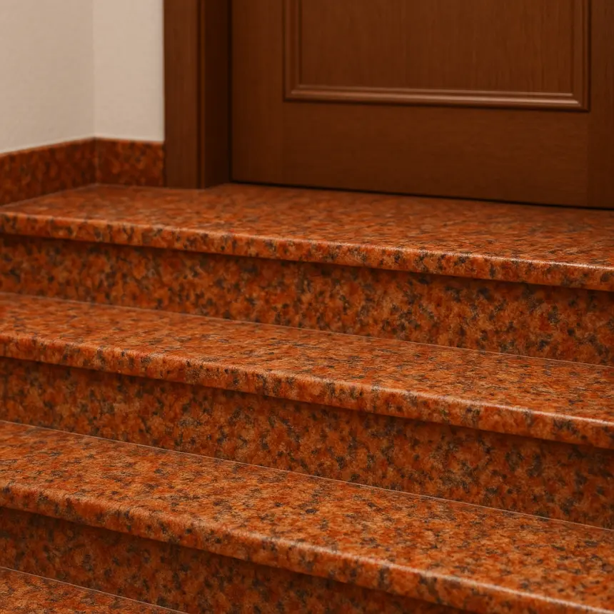 Stopnice na schody wewnętrzne z granitu Multikolor o grubości 3 cm dostępne są w różnych rozmiarach w sklepie MMSTONE.